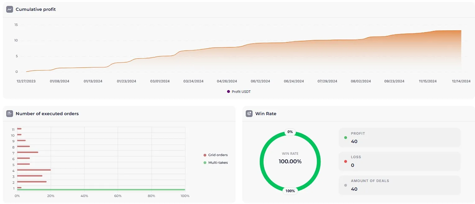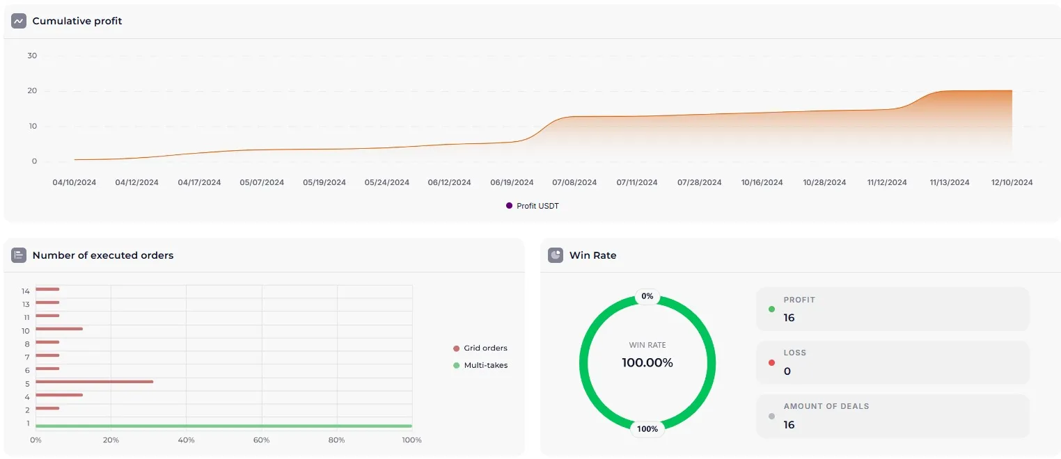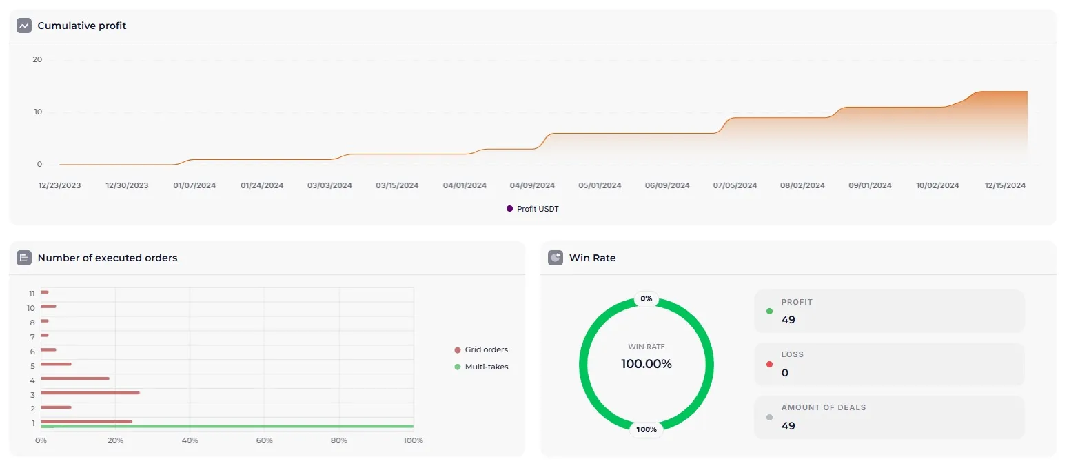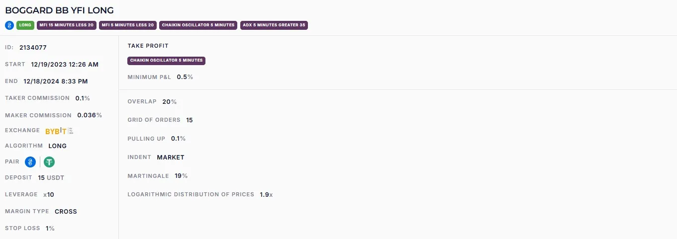 Before using the Boggard strategy, it is important to conduct a detailed analysis and backtests on historical data of other assets. This will help to understand how the strategy has worked in the past and avoid risk-related mistakes. Do not risk more than 1% of your deposit on a single bot run to preserve capital.