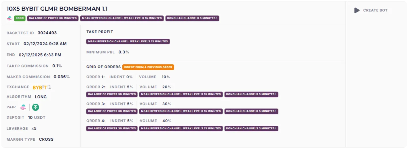 The Bomberman strategy is a systematic approach to trading in the cryptocurrency market. It combines technical analysis, risk management, and discipline, making it universal and adaptive. The use of indicators such as BOP, Mean Reversion Channel, and Donchian Channel not only helps identify entry points but also minimizes risks.