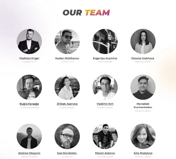 We do not hide our faces, we are an international team from the UAE, Turkey, Kyrgyzstan, Russia, Belarus, Poland and Israel. You can find more information about our specialists in the section “Team” on the website. By clicking on a team member, you will be able to view his personal profile and work experience in the LinkedIn profile.