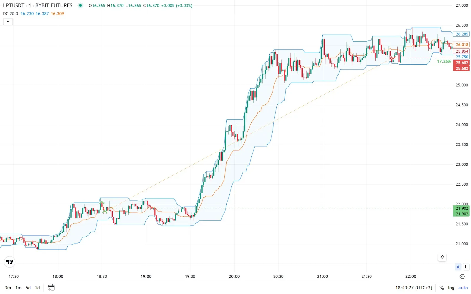The Donchian channel helps traders determine the best moments to enter and exit trades, as well as assess the strength of the current trend. The channel width indicates the potential volatility of the asset.