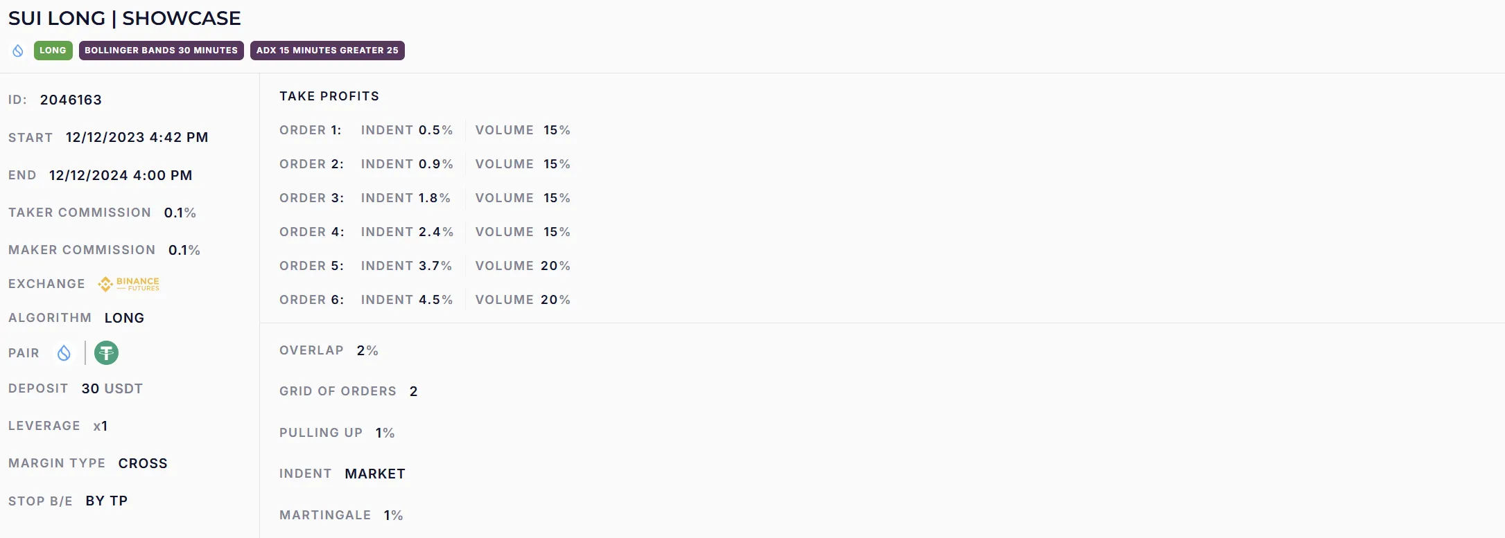 Coins selected in bots are chosen according to CoinMarketCap capitalization top. Settings are created exclusively for a specific coin.