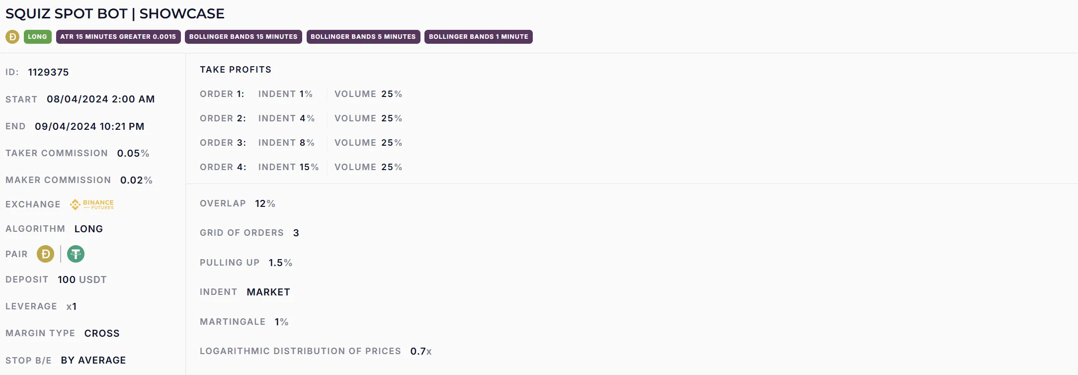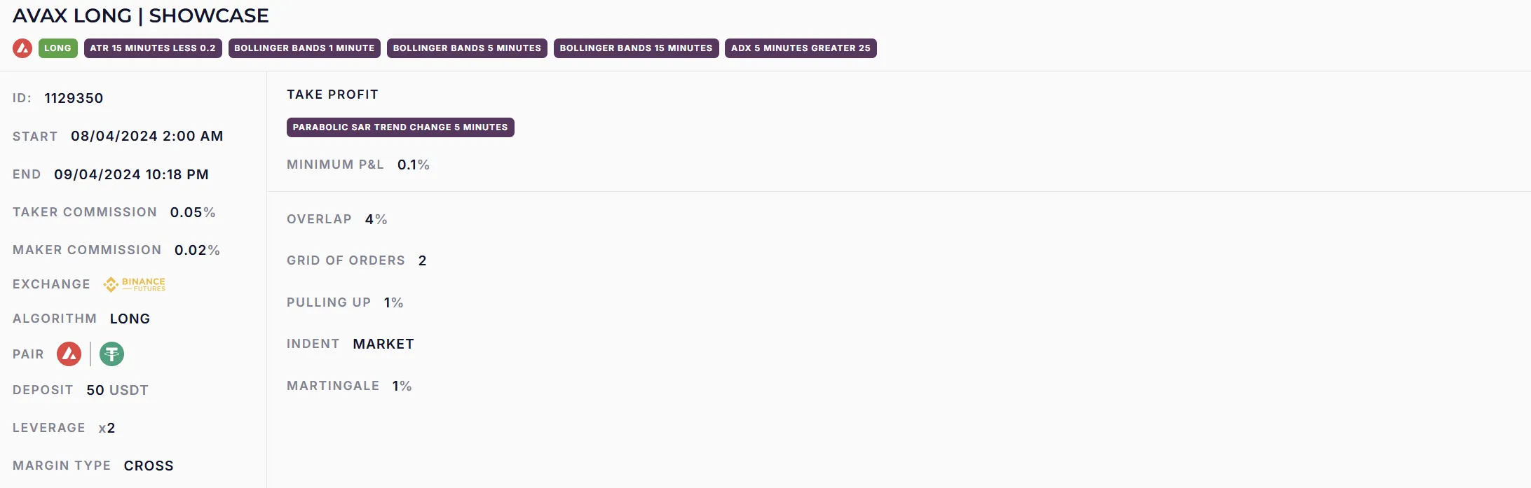 The bot is available to run with a small deposit of 50 USDT with 2 leverage. Opens trades from Bollinger Bands on different timeframes. Closes a trade automatically on the signal of a trend indicator.