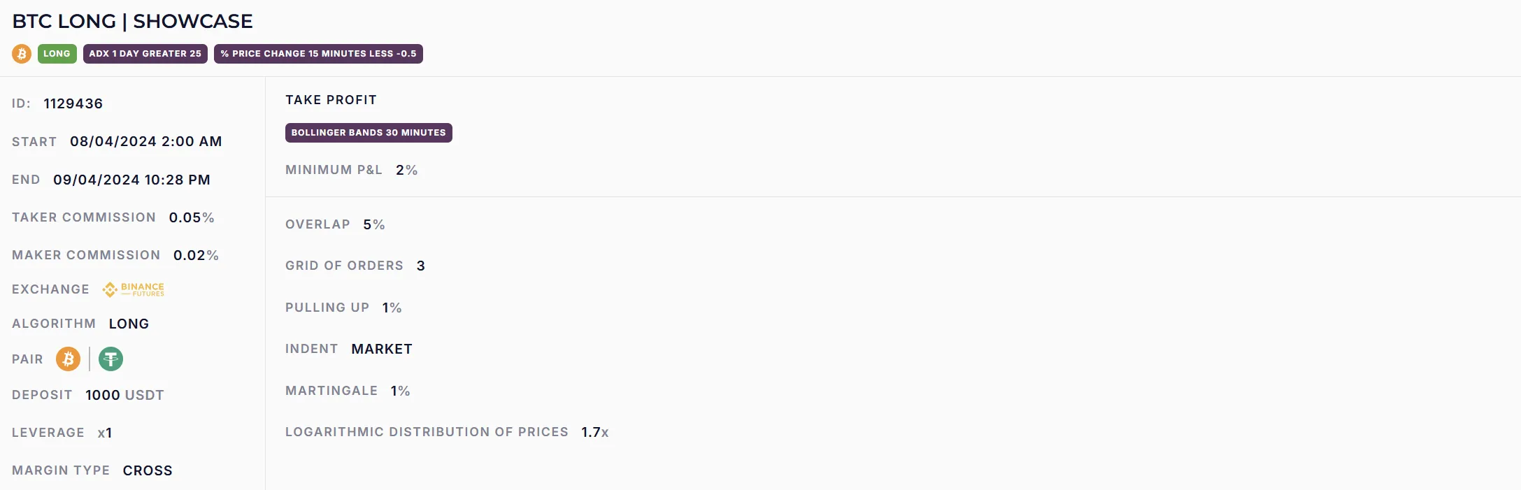 In case you hit a deep drawdown, close the transaction on the exchange with your hands and return to trading on a stable market.