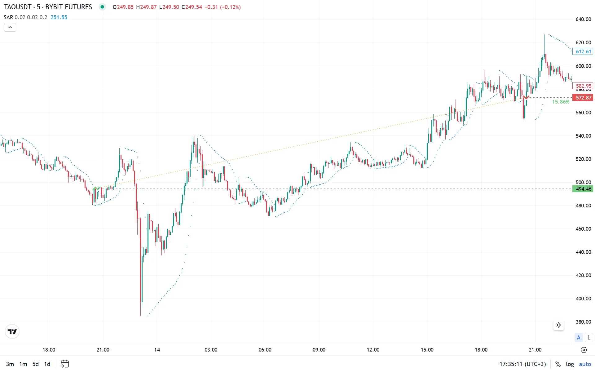 A special feature of Vega is the use of Parabolic SAR (Stop And Reverse). This indicator tracks the direction of movement: points below the price signal a rise, points above the price signal a fall. Vega uses SAR on two timeframes.