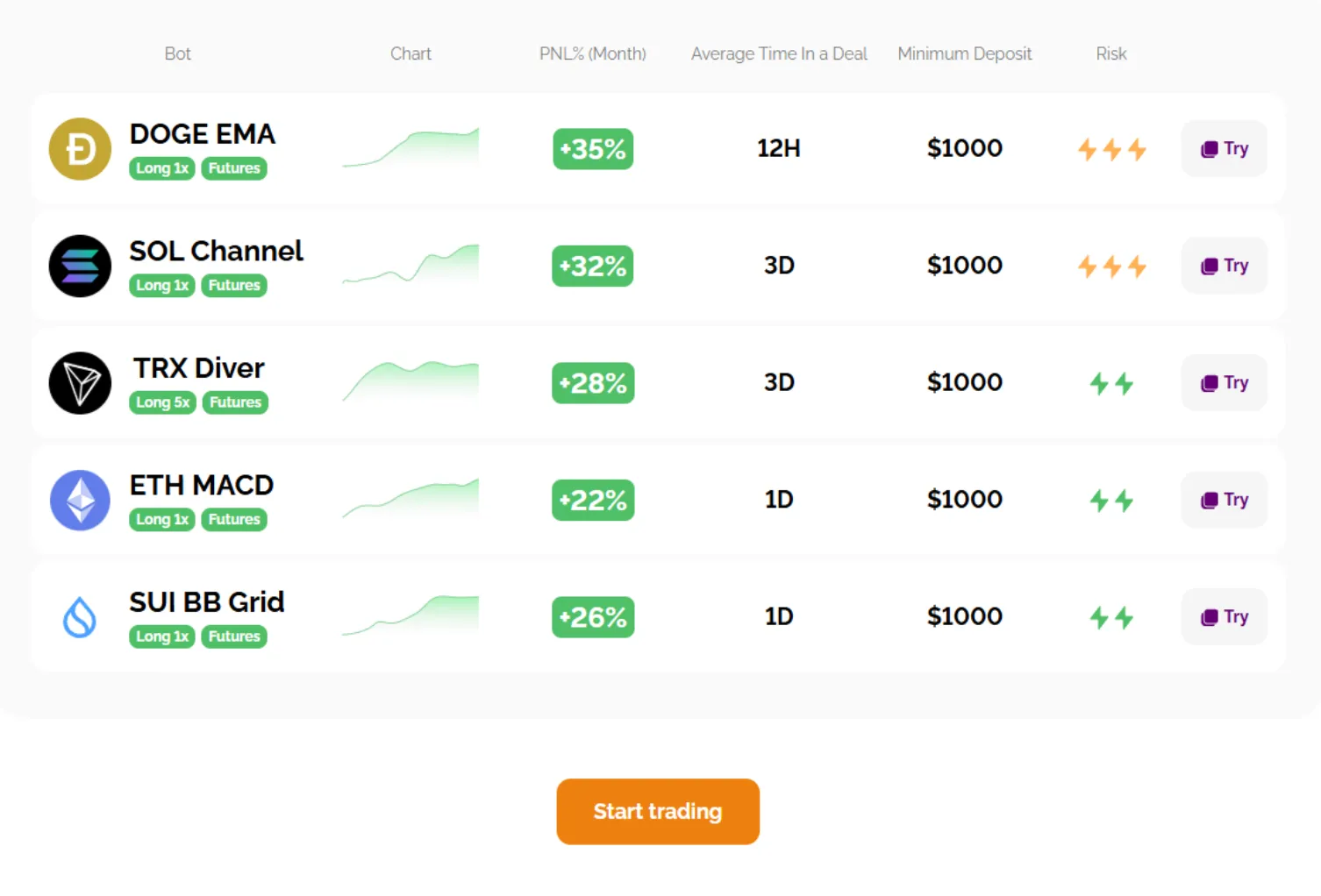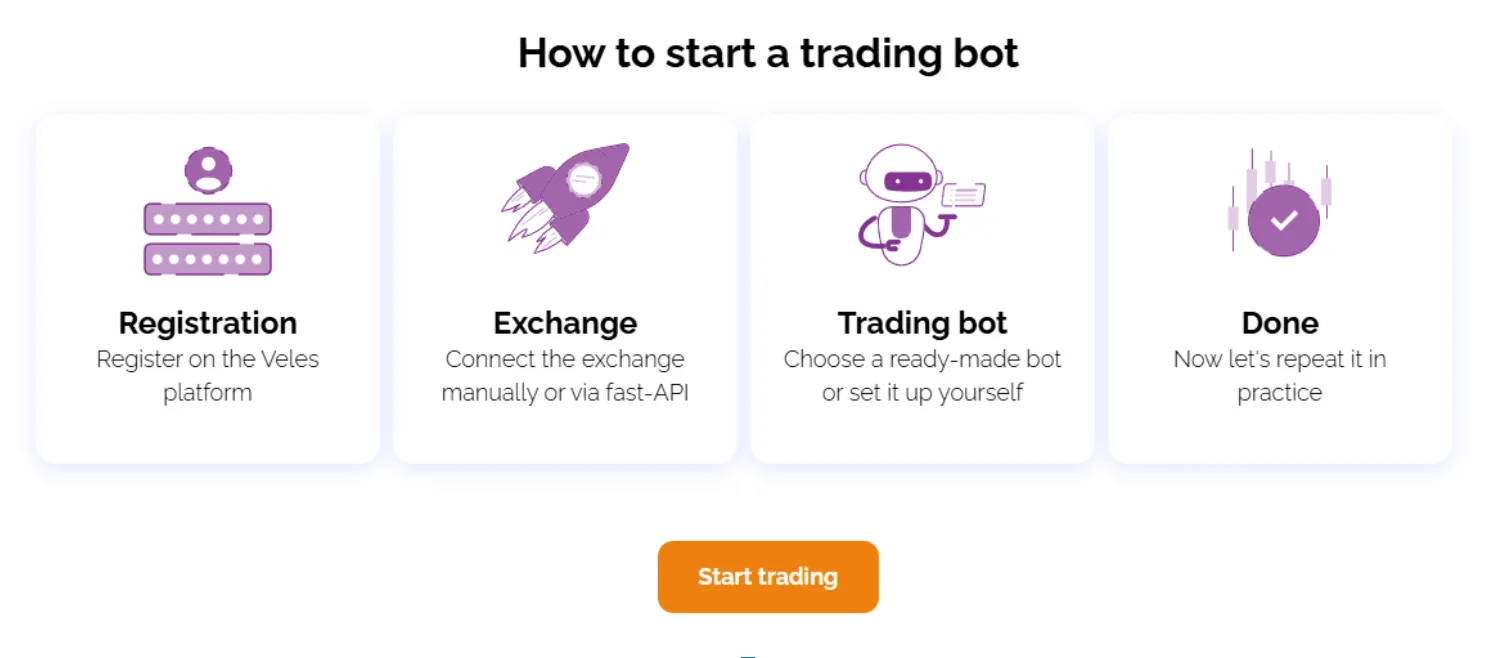 The algorithm starts working as an algorithmic trading bot that analyzes the market around the clock and makes trades according to the strategy you set.