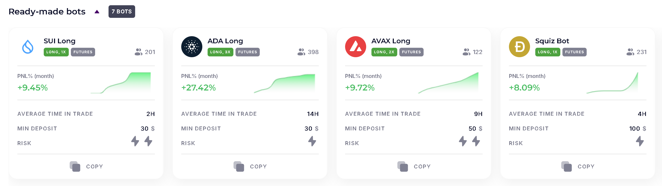 Ready-made cryptocurrency bots are available on the Veles platform with settings that are proven to work in practice. These bots can save traders time and effort by providing them with ready-made strategies that have already shown positive results.