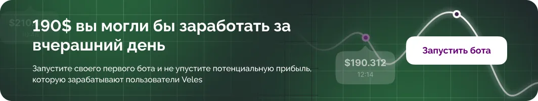 Готовы? Зарегистрируйтесь на Veles, получите $5 на тест и запустите бота. Или попробуйте бэктест на другой монете — убедитесь в прибыльности стратегии сами!