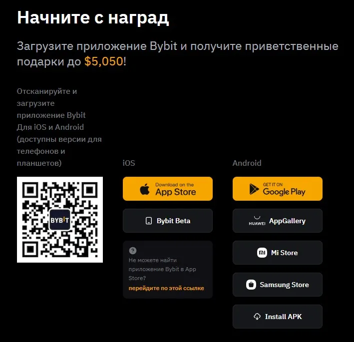 - Установите приложение Bybit. Скачать его можно в App Store или Google Play. Оно совершенно бесплатно