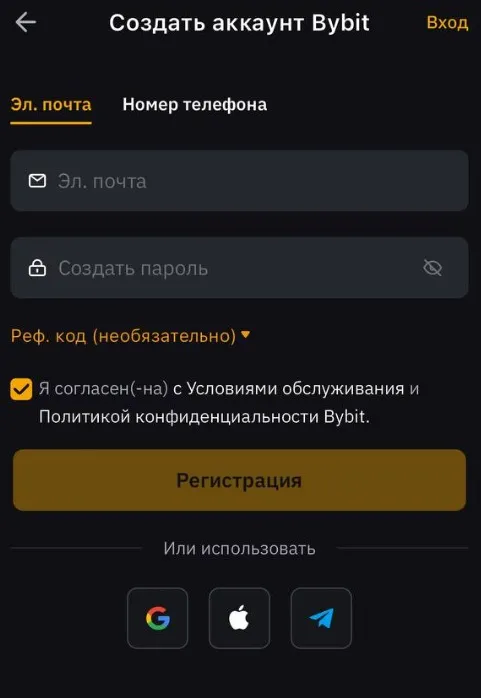 Варианты регистрации на бирже Bybit