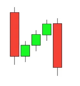 Falling Three Methods – противоположный паттерн, указывающий на продолжение медвежьего тренда.