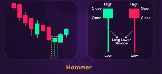 Бычьи паттерны оповещают о потенциальном росте цены актива. Один из ярких примеров – молот.