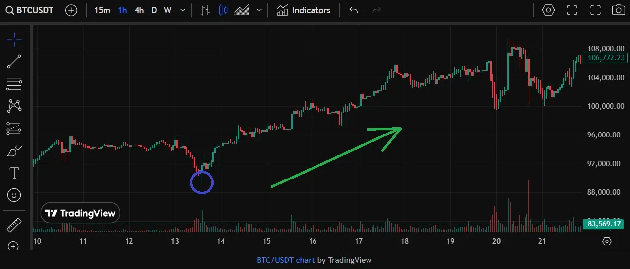 Если на уровне $90,000 для Биткоина появляется “Бычье поглощение” с высоким объемом, можно открыть длинную позицию, выставив стоп-лосс на $89,500.