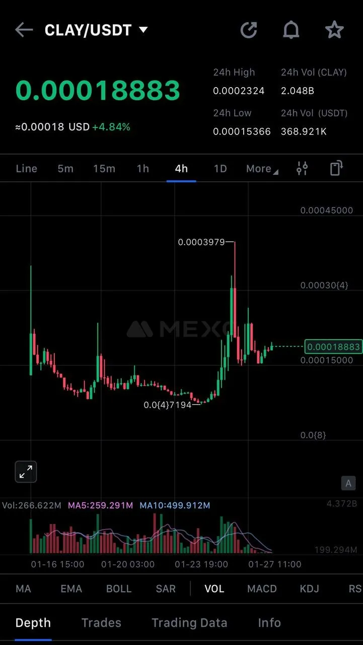 Текущая цена токена Clayton составляет 0,00015-0,0002$. С момента листинга цена изменилась следующим образом: