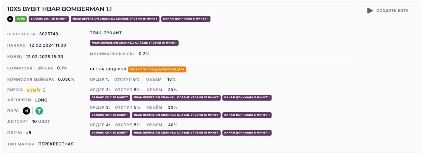 10X5 BYBIT HBAR BOMBERMAN 1.1 (~140% годовых)