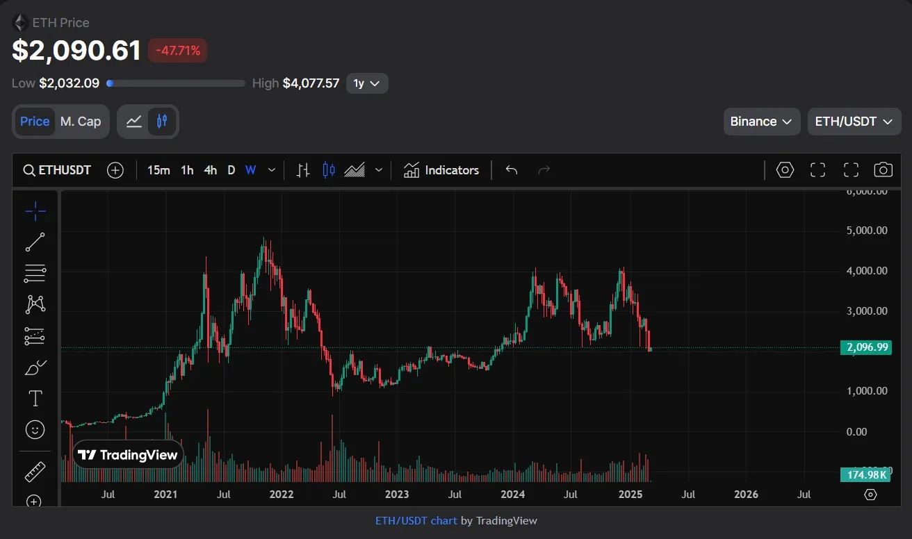 Ethereum (ETH) традиционно следует за Биткоином, но после стабилизации BTC начинает расти быстрее.