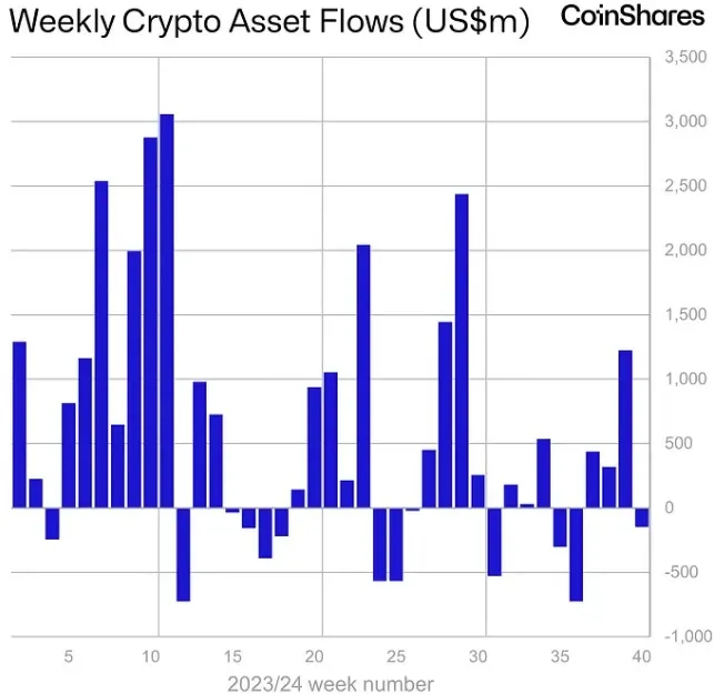 В 2024 году рынок криптовалют продолжает развиваться, предоставляя всё больше возможностей для тех, кто готов вкладывать в него свои средства. Даже в США, где государство очень консервативно регулирует финансовую деятельность, в 2024 году появились фонды, предназначенные специально для вложений в криптовалюту. По данным Coinshares, такие фонды чаще испытывают приток активов, чем их отток. На скриншоте - диаграмма притоков в такие фонды и оттоков из них.