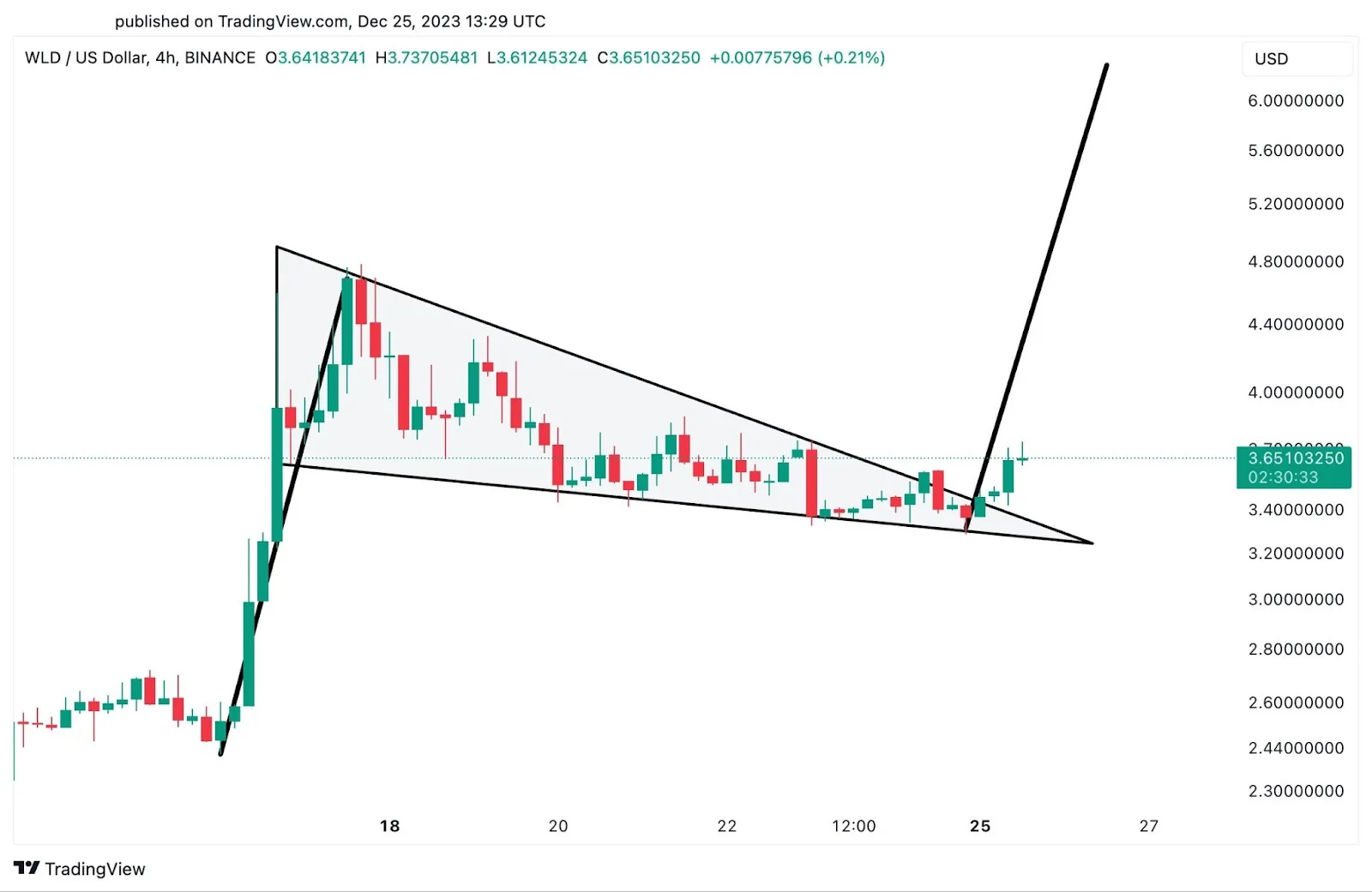 Фигура флаг в TradingView — это визуальный паттерн, который трейдер может легко построить с помощью инструментов графического анализа на платформе. Он состоит из двух частей: сильного импульсного движения и консолидации в виде параллельного канала. Эта структура помогает определить момент продолжения текущего тренда после короткой паузы.