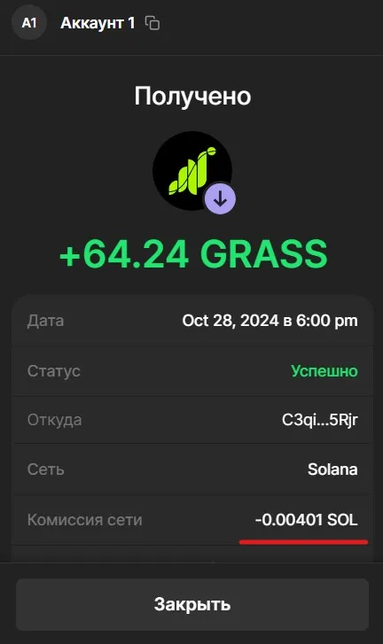 Вывод токенов $Grass с кошелька на свой аккаунт биржи: