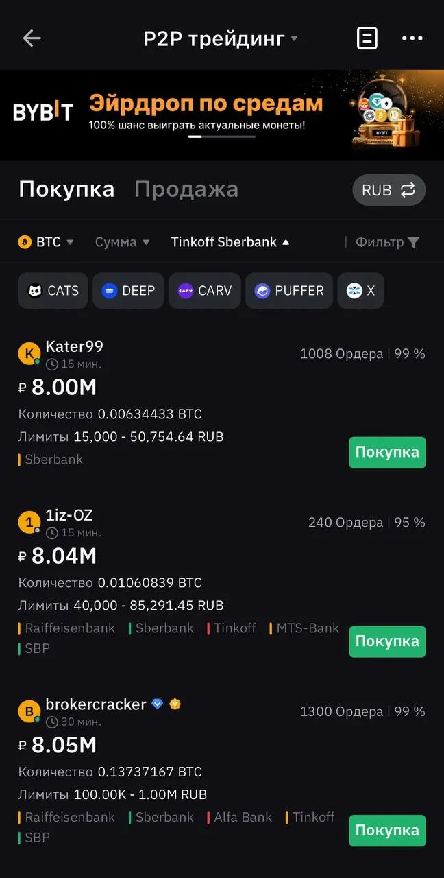 4. Совершите оплату через выбранный метод, после чего продавец переведет биткоин на ваш кошелек в P2P-платформе.