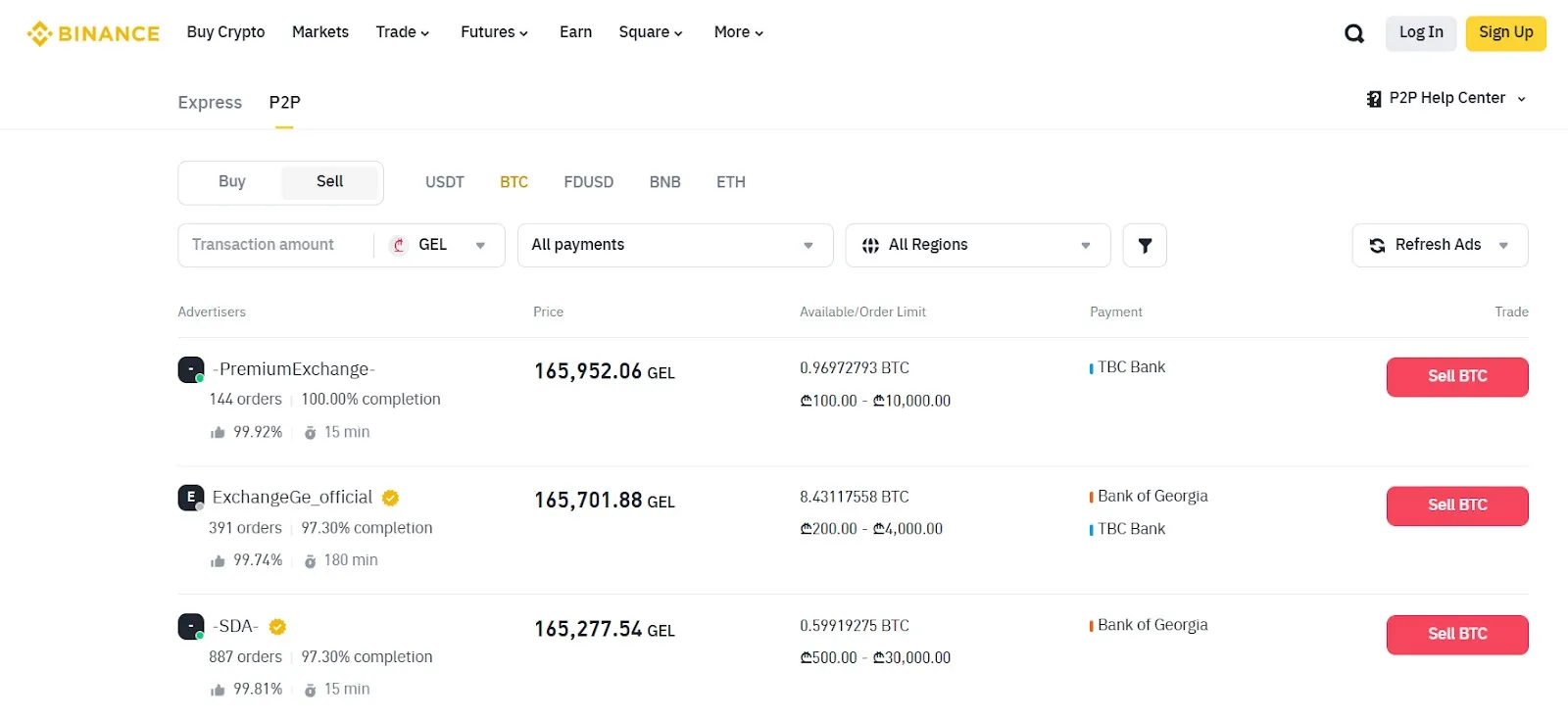 Обратите внимание, что клиенты Бинанса из России не имеют доступа к P2P.