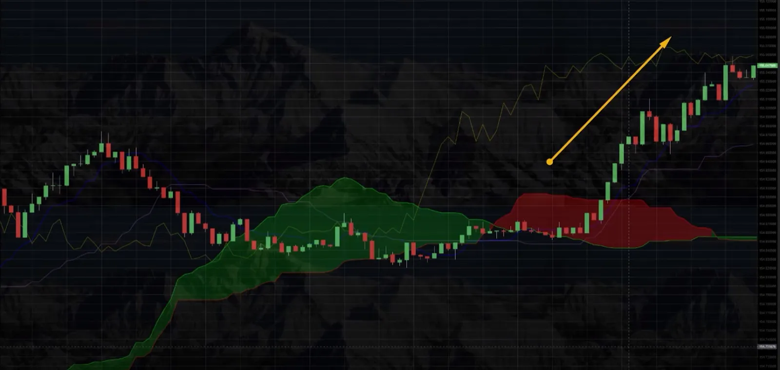 Цена внутри облака чаще всего свидетельствует о консолидации или боковом движении.