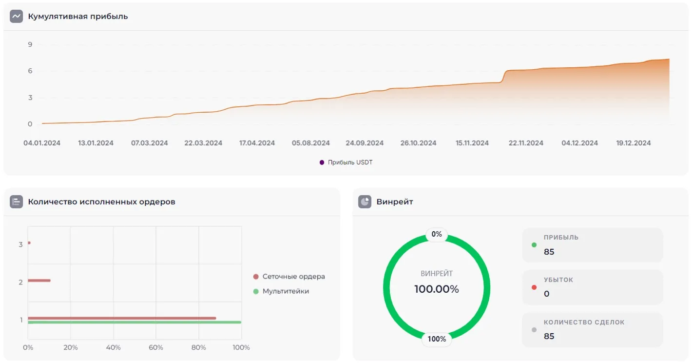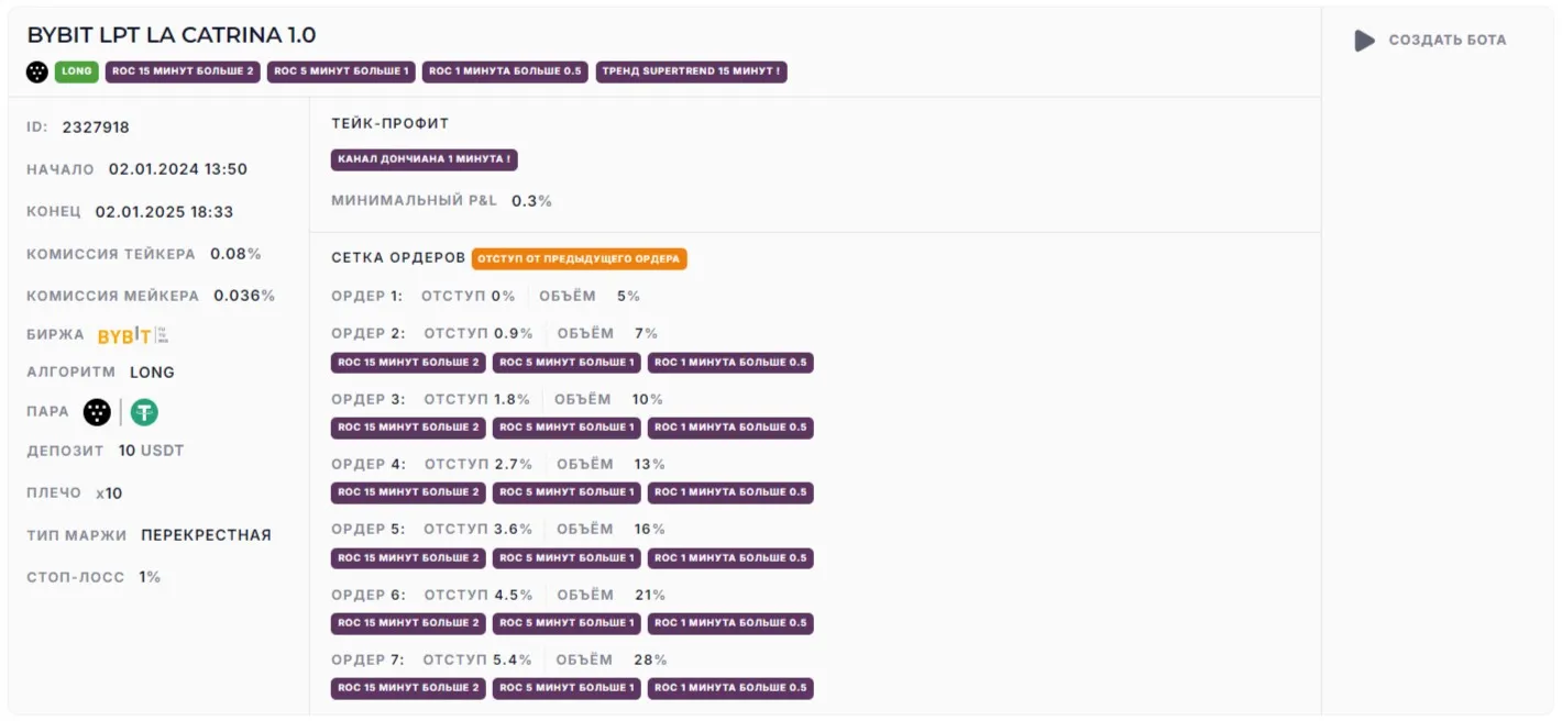 При запуске одного бота не рекомендуется рисковать более 1% от депозита, чтобы сохранить свой капитал.