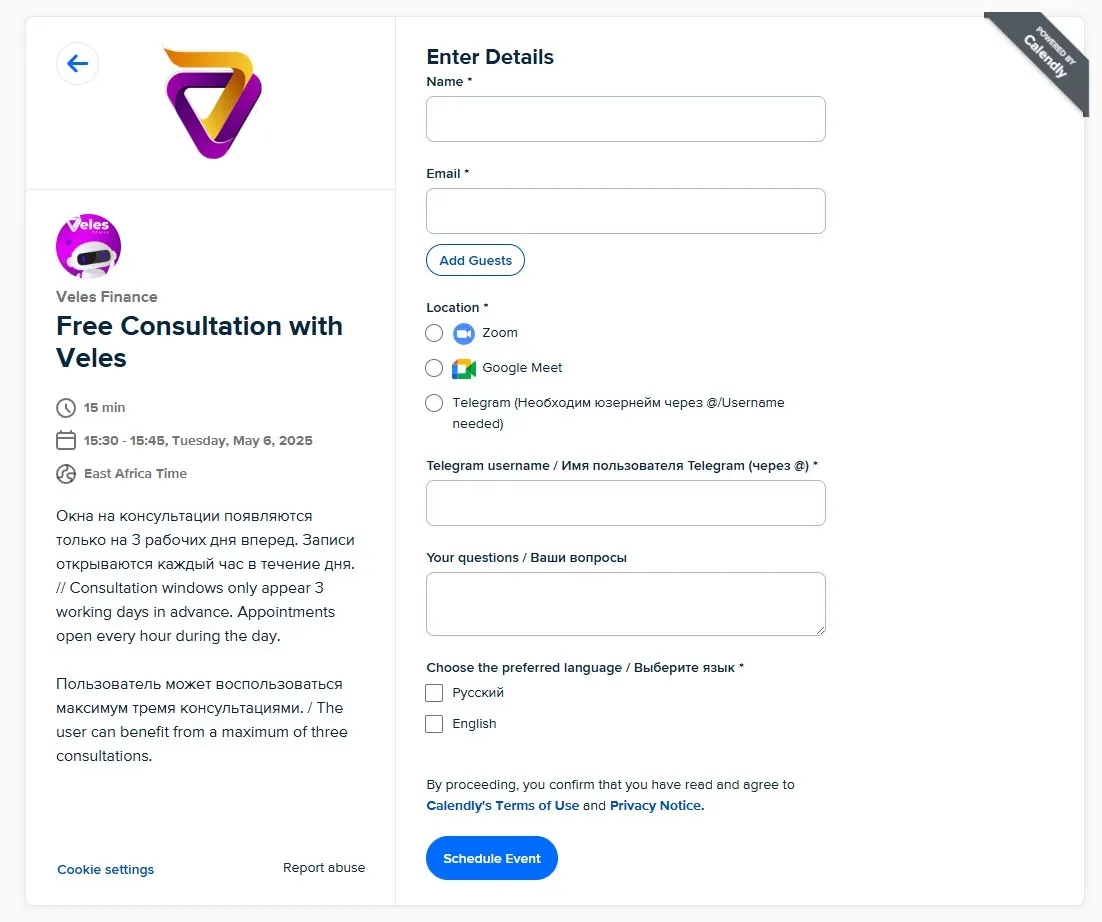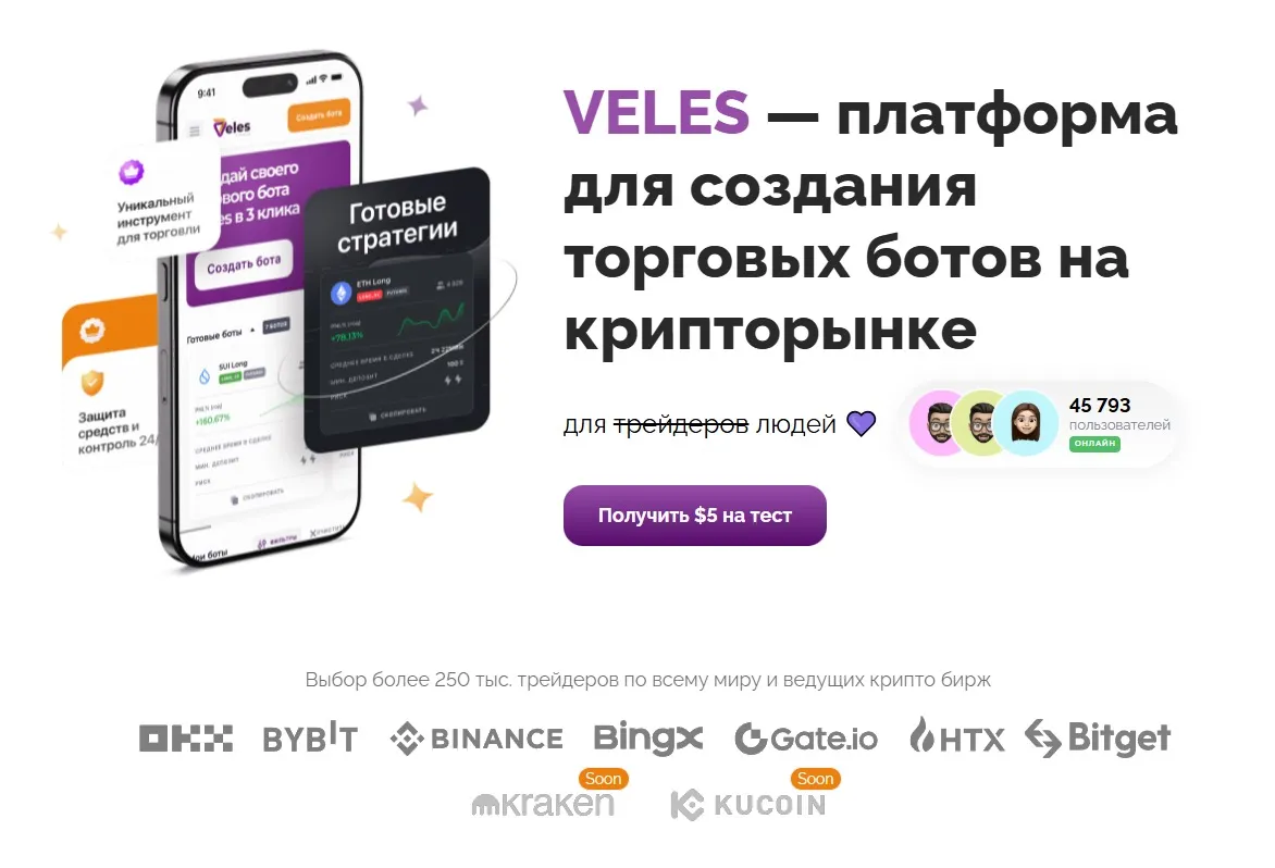 Veles предлагает не просто торговых ботов, а живую поддержку и персональные консультации. Все это поможет на начальных этапах, тем более если вы новичок и хотите понять глубину работы ботов и рынка в целом.