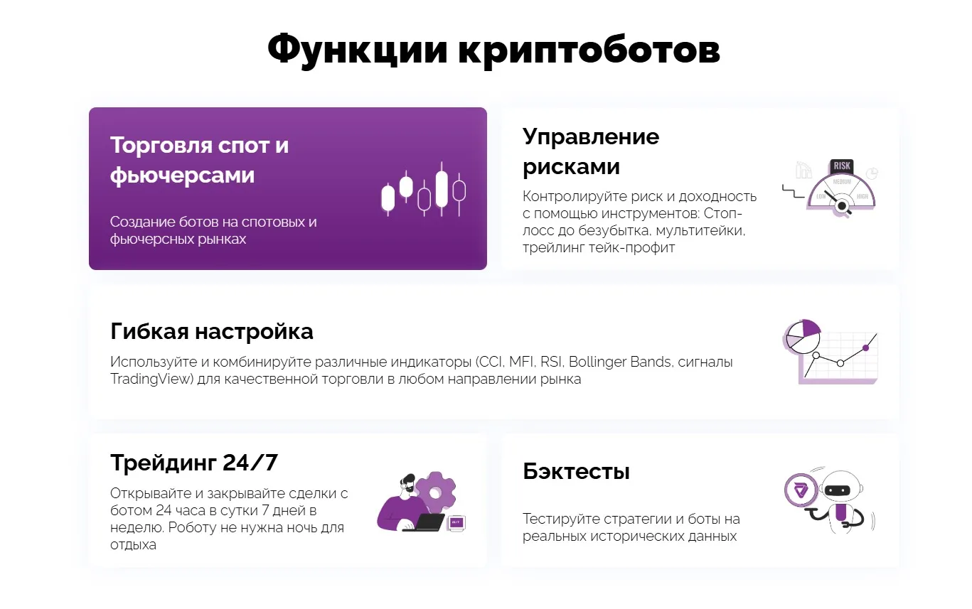 Торговые боты Veles Finance. Программы, которые совершают сделки по заранее заданным параметрам, без личного участия в процессе как на фьючерсах, так и на споте, ботов можно создать и настроить самому или взять уже готовых.