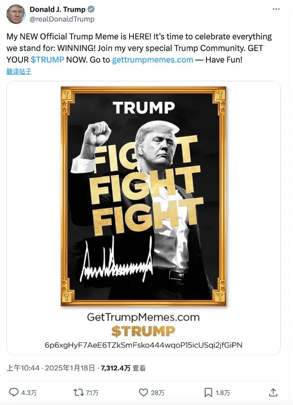 TRUMP — это мемкоин, вдохновленный политической деятельностью Дональда Трампа, созданный на блокчейне Solana.