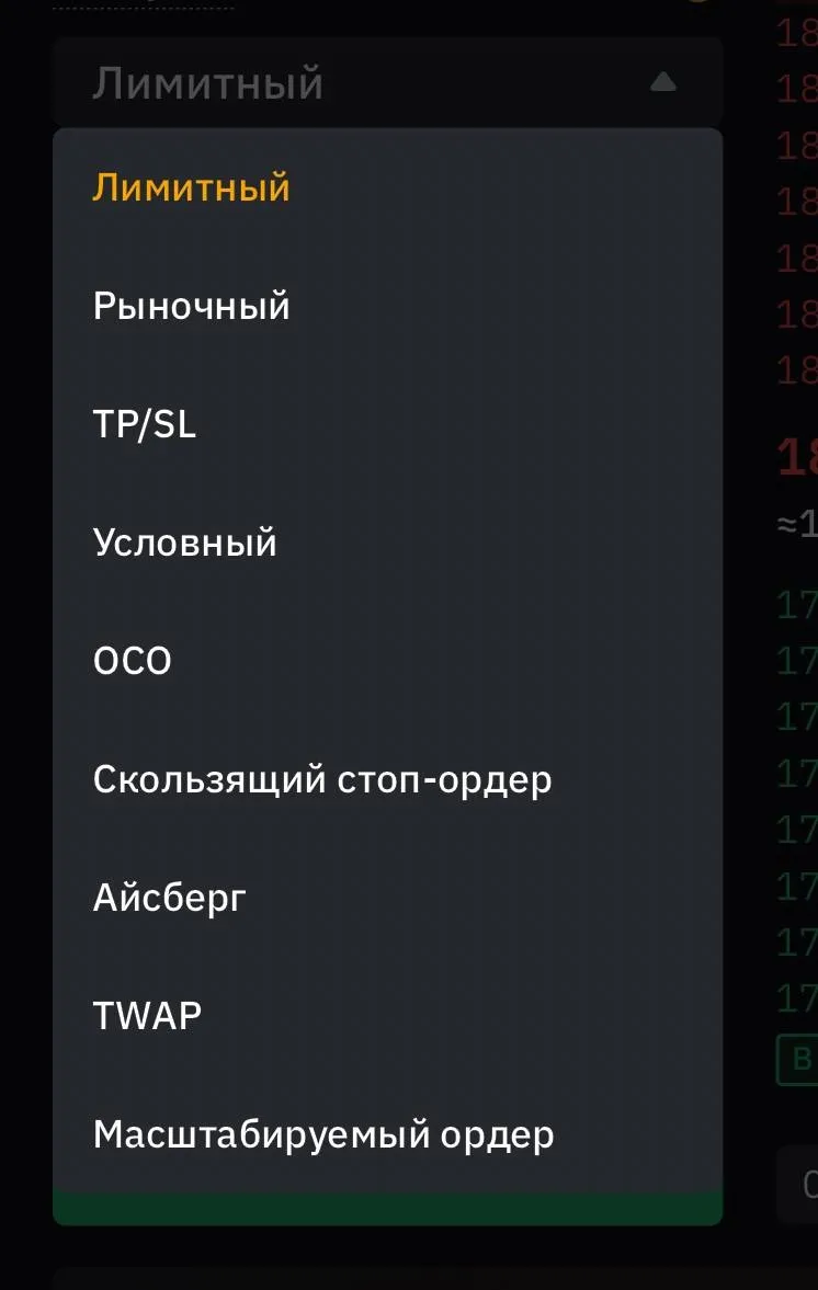 На спотовом рынке трейдерам доступно несколько типов ордеров: