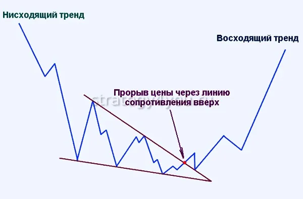 Як правило, після пробою вгору ціна стрімко зростає. Це класичний сигнал до розвороту тренда, особливо якщо підтверджений обсягами.