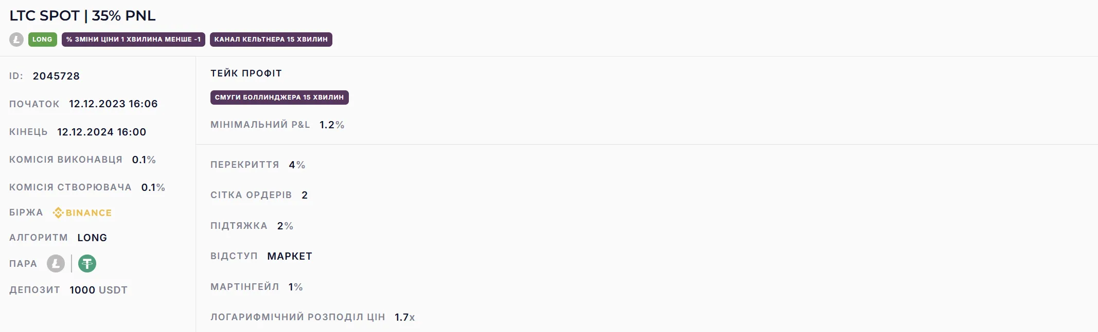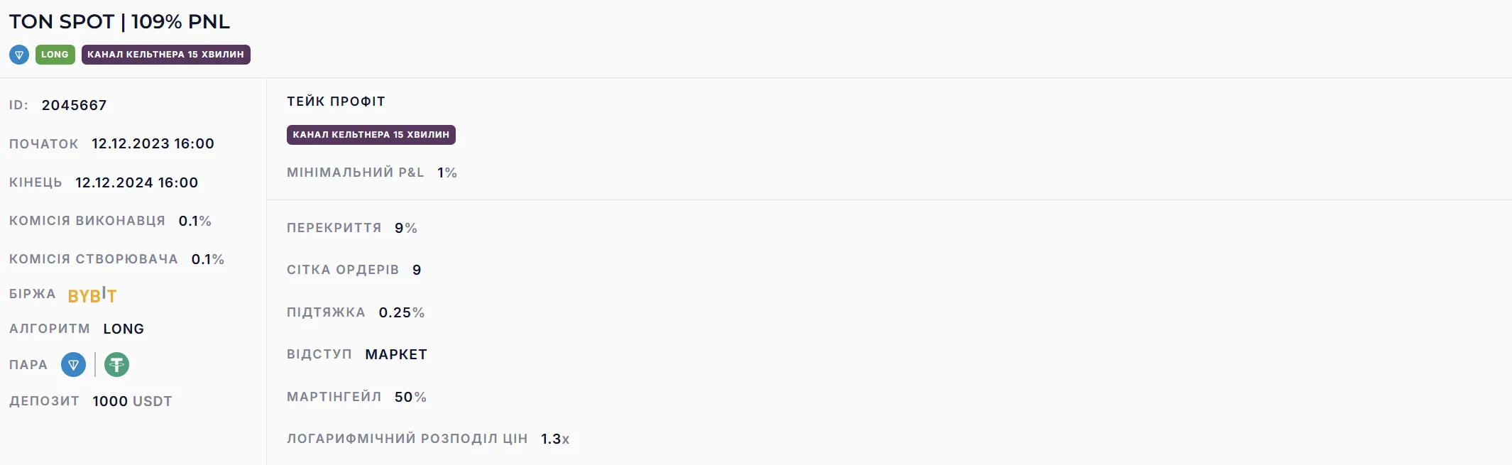 Канальний бот із частими угодами, набирає позицію в 9% сітці.