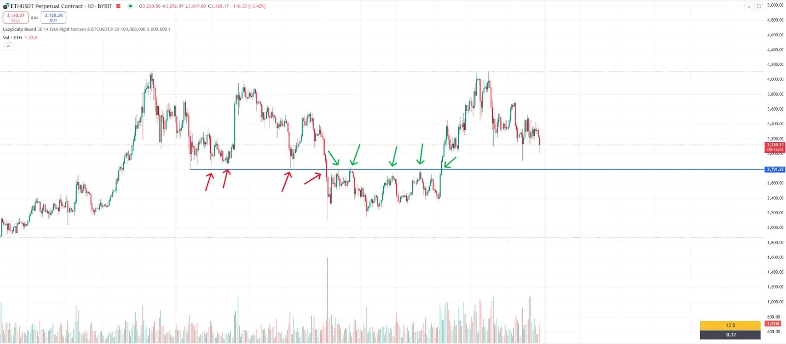 Приклад: Якщо ціна біткоїна кілька разів опускалася до $30,000 і відскакувала, це вказує на рівень підтримки. Якщо вона не могла подолати $50,000, це стає рівнем опору.