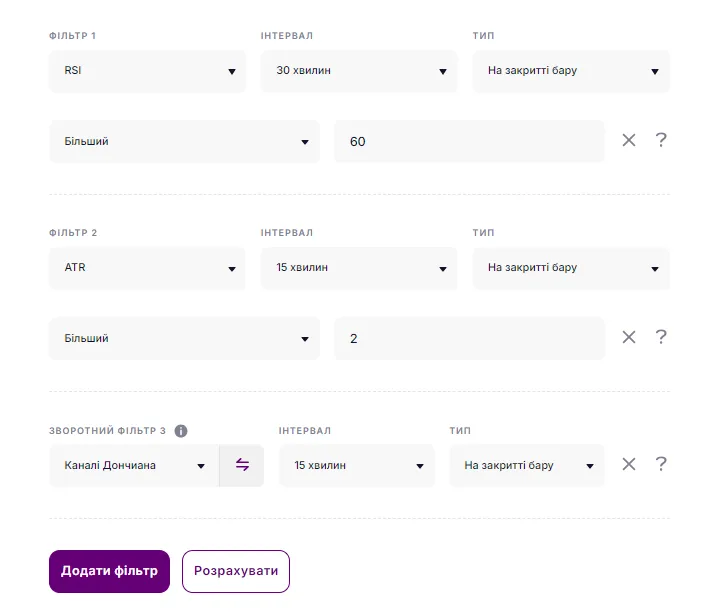 Наприклад, трейдер визначив для себе, що обраний ним актив пробиває свої рівні тільки в тому разі, коли індикатор RSI на 30-хвилинному таймфреймі показує перекупленість, значення ATR вище 2 і коли пробивається канал Дончіана. І що найважливіше, всі ці підстави мають бути задоволені.