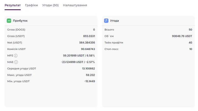 Важлива деталь, яка допомагає зберегти депозит від непотрібних торгових рішень, - це бектести. Після складання всіх необхідних налаштувань для торгівлі трейдери тепер можуть перевірити їх на історії графіка. На бектестах буде видно всі точки входу і виходу з позицій, розраховані профіт і збиток і кумулятивний прибуток стратегії.